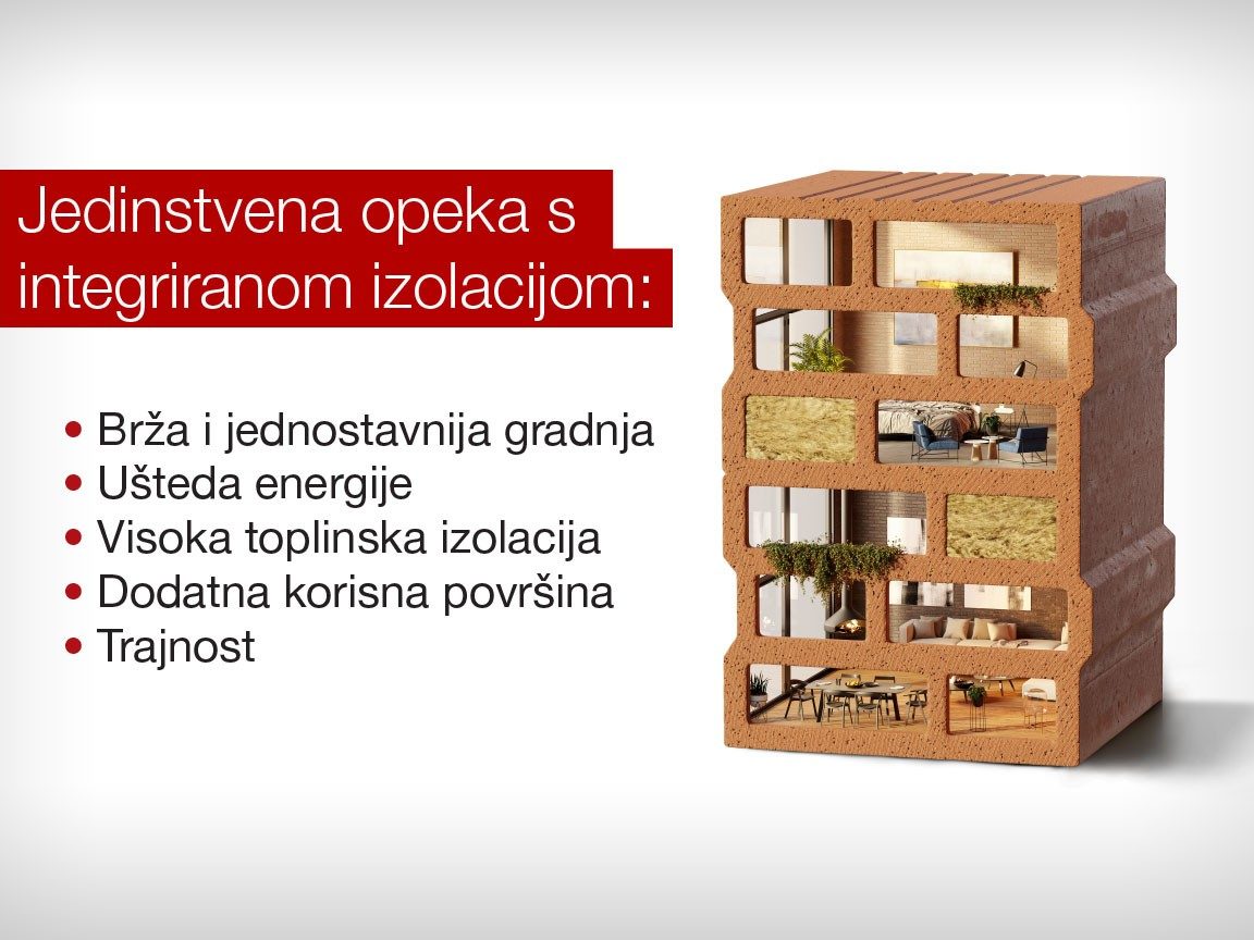 Porotherm IZO Profi tvrtke Wienerberger jedinstveno je rješenje za gradnju zgrada gotovo nulte energije, bez primjene dodatne toplinske izolacije. Imaju rješenja za gradnju nZEB kuća, prvi su izgradili takvu kuću Hrvatskoj te njihova moderna rješenja tipa Porotherm IZO Profi opeke, imaju takva energetski učinkovita svojstva da je nije potrebno izolirati jer je izolacija u njoj.